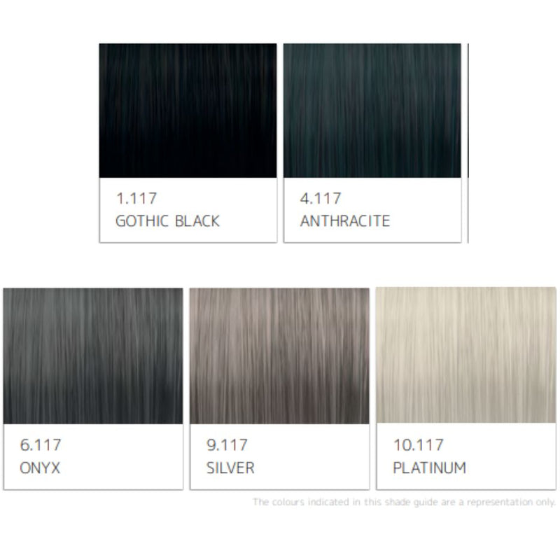 Elegant, arresting grey shades. For use on natural white or grey hair & on hair pre-lightened to very light blonde (no yellow tones).